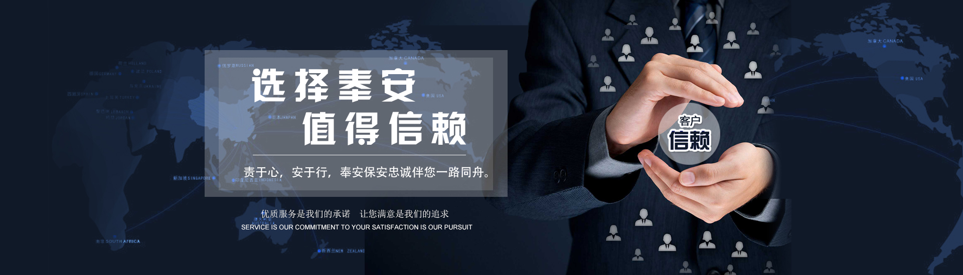 以客為尊 :客戶是公司生存和發(fā)展的決定因素,沈陽奉安保安服務(wù)有限公司堅(jiān)持以客戶為上帝的經(jīng)營理念,全力貫徹“以客為尊、以誠待客”的服務(wù)宗旨查看更多 >> -